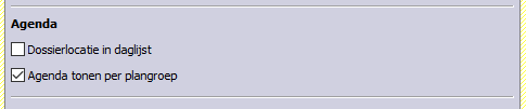 | Agenda tonen per plangroep | Geeft in de agenda een optie om een plangroep te selecteren |