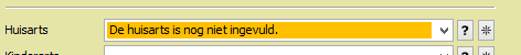 Als de huisarts al bekend is kun je deze in het dossierscherm aan de cliënt koppelen. Als de cursor in het vak Huisarts staat, kun je beginnen met typen. De tekst wordt dan automatisch aangevuld. Ook is het mogelijk met de muis te klikken op de v-knop om uit een pulldown lijst te selecteren. Met het vraagteken (?) kun je de gegevens van de geselecteerde huisarts bekijken.