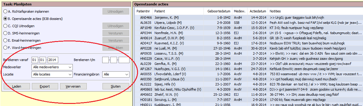 - Herinneringen De herinneringen gaan niet uit van het opgegeven datum-bereik, maar bevatten alle afspraken ná vandaag en binnen een bepaald aantal dagen. De instelling voor hoeveel dagen van te voren er SMS-, E-mail- of Word-herinneringen worden gestuurd is in het configuratiescherm te vinden.