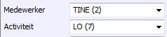 In de selectie-vakken voor medewerker en activiteit kan ook een aantal getoond. Hier zien we een selectie waar medewerker TINE twee (dossiers) heeft, en activiteit LO zeven.