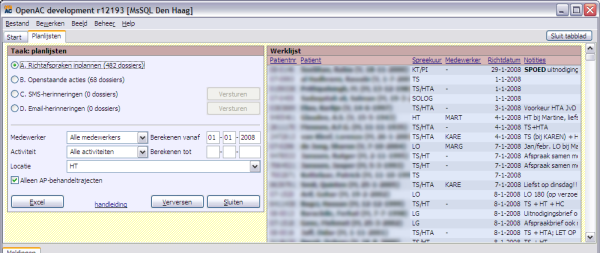 In deze lijst zie je alle patiënten waarvan nog een actie open staat. De acties met de eerstvolgende datum staan bovenaan.