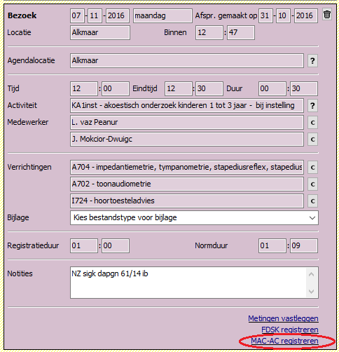 • Open in OpenAC v2.016 een dossier met een bestaand bezoek.